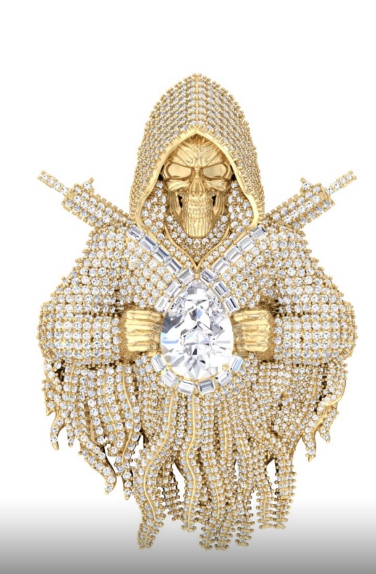 Grim Reaper with ar15s (pendant) 6.6ct diamonds